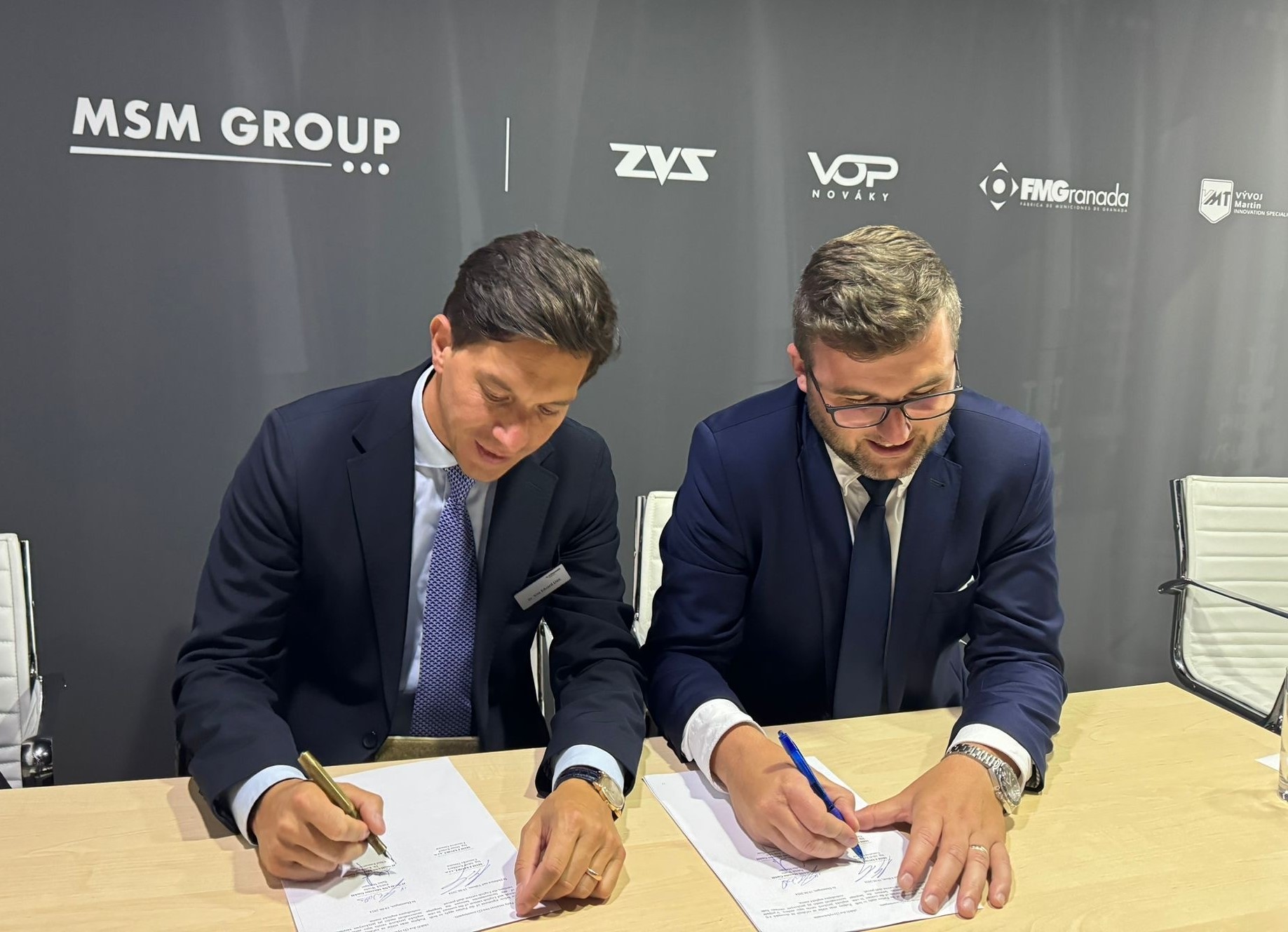 Silnú spoluprácu podpismi spečatili CEO JUNGHANS Defence Dr. Kim Eduard Lioe (vľavo) a Executive Manager MSM EXPORT Jakub Krchňavý (vpravo).